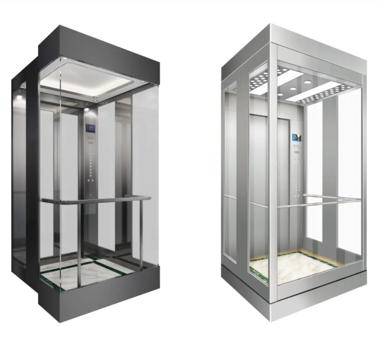 Elevators featuring transparent glass walls that provide passengers with scenic views while offering smooth, reliable operation—ideal for malls, hotels, and modern architectural spaces.